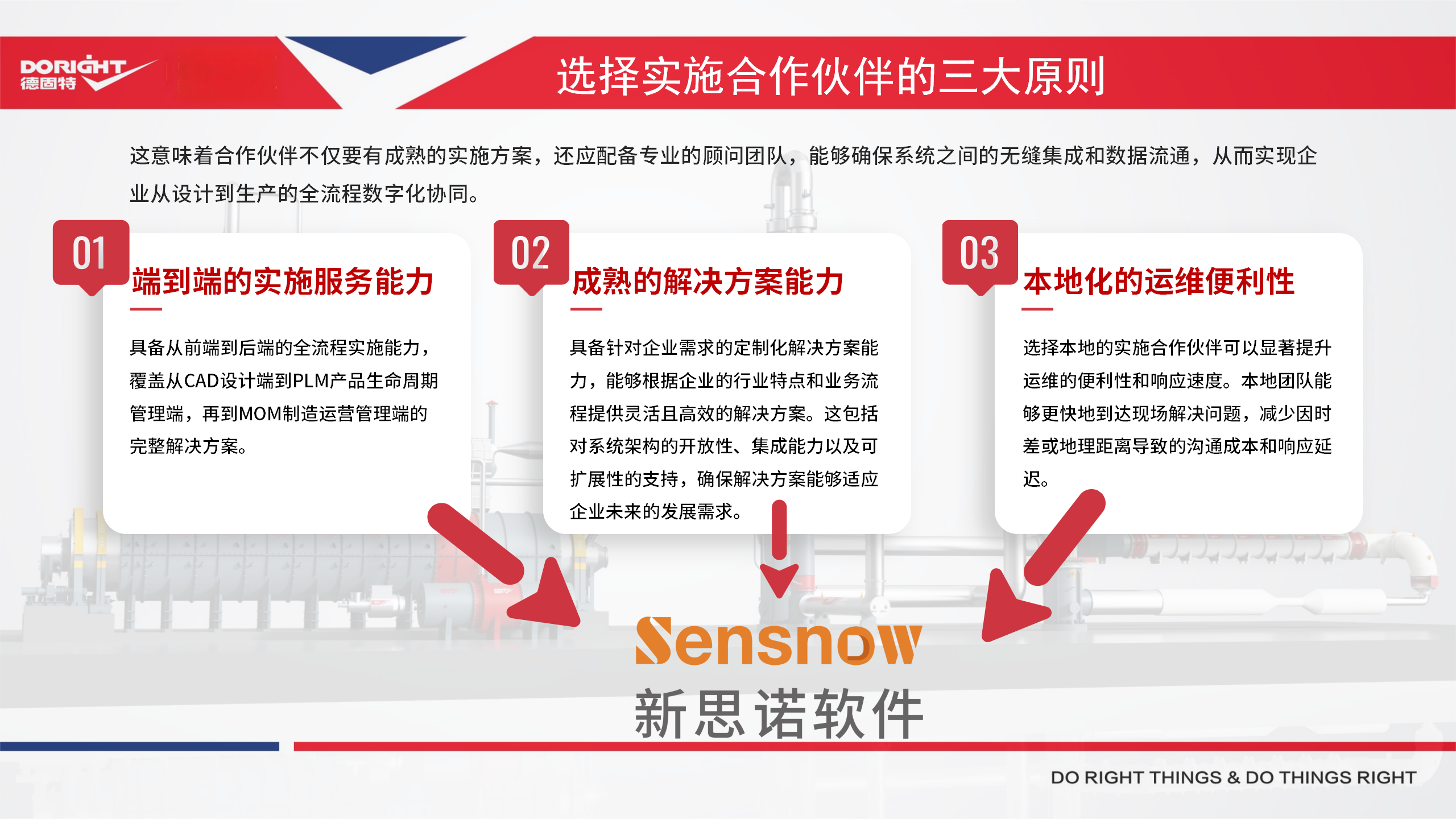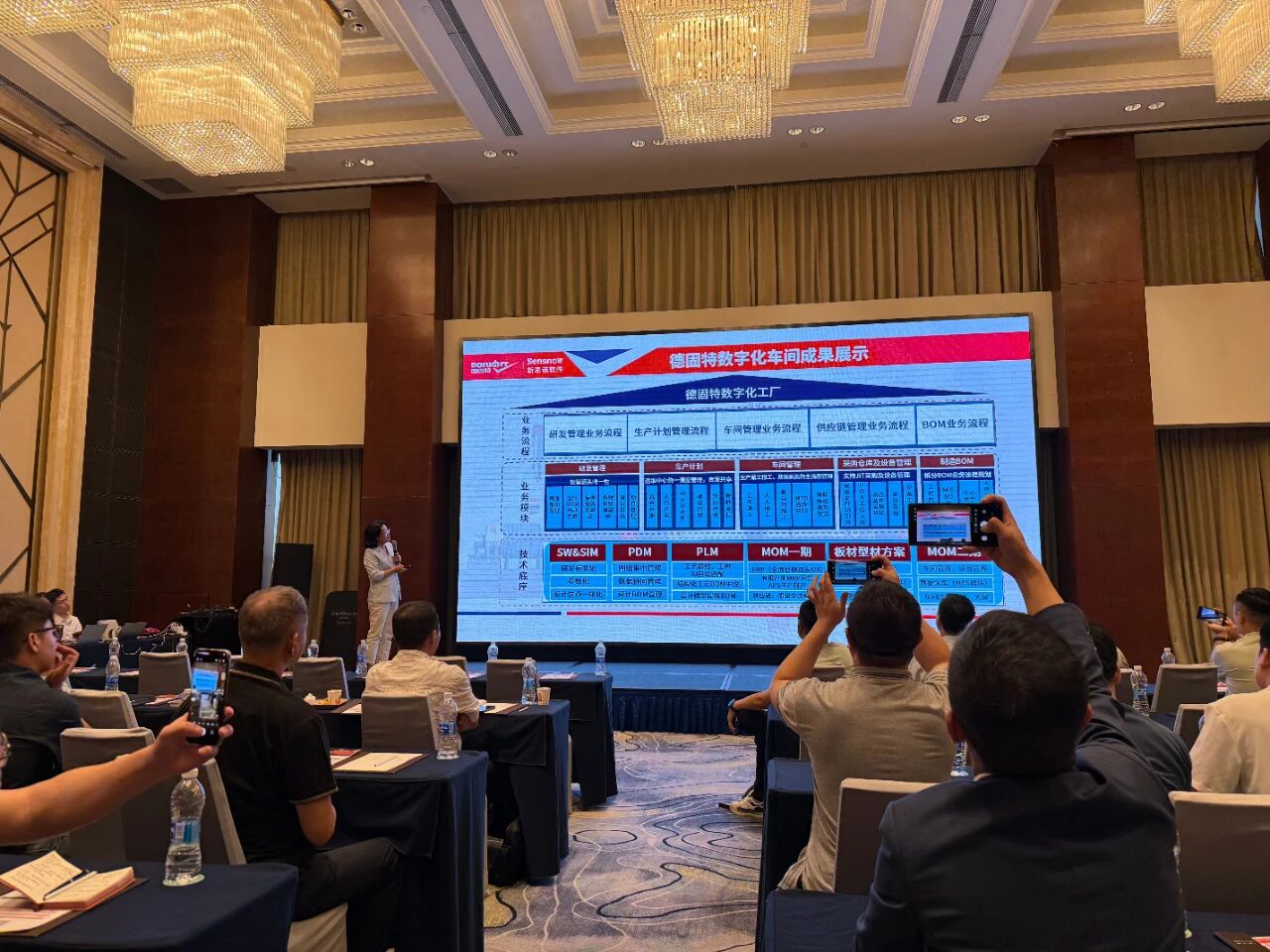 在案例分享中,葛总进一步介绍了德固特的系统选型经验。她指出,公司的总目标是“实现数字化连续与集成”,因此在面对国内外经济环境的剧烈变动时,德固特率先引入达索SW&PLM&MOM端到端企业数字化平台。经过多轮筛选,最终选择青岛新思诺提供的本地化服务与技术支持,完成了针对工艺的细化与结构化处理,实现了工艺数据从无到有、直至有效指导生产的显著效能提升。