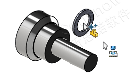 现在,我们在 SOLIDWORKS 中的“插入零部件”或从设计库、WIN 资源管理器拖入这些紧固件时鼠标滚针将出现智能识别符号,代表已经识别这些紧固件,放置在模型中时出现放置符号后松开鼠标即可自动创建配合。