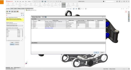 SOLIDWORKS 能让您更高效地对模型进行简化处理,通过即时将装配体插入相关零件来强化装配体的功能,以及在注释和表格中纳入可自定义属性的度量单位,从而帮您分担工作。