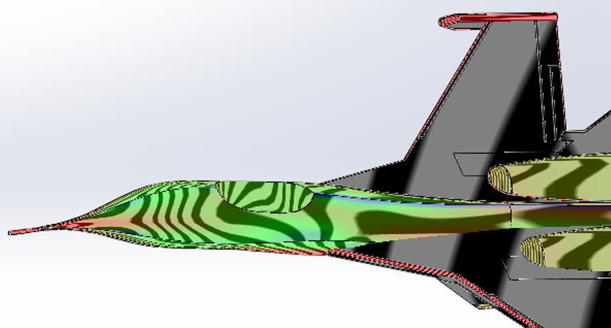 通过颜色分布,进行曲面曲率的显示。曲率分析和斑马纹可以一起使用,更直观观察模型面的曲率变化。