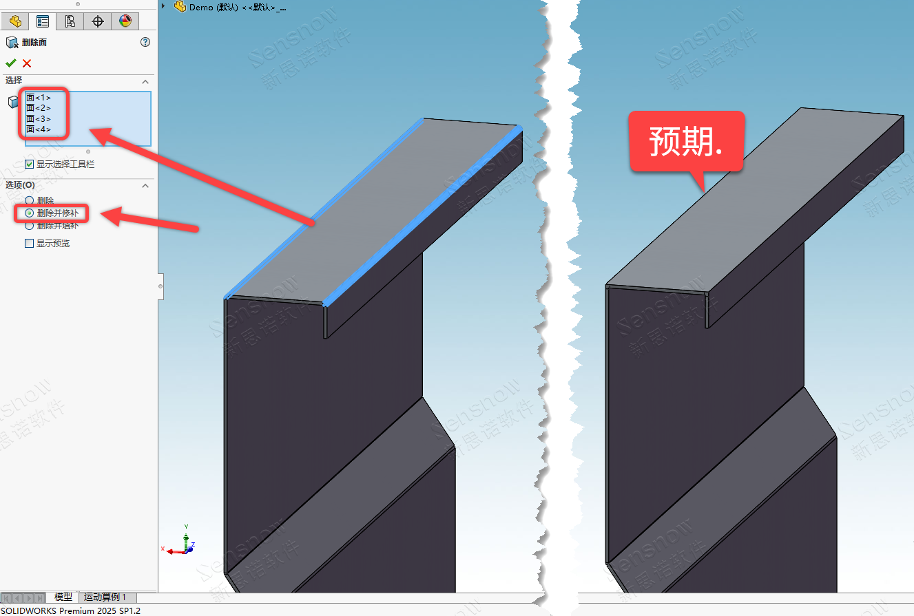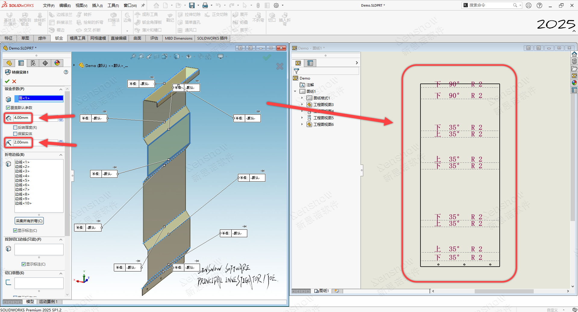或者,沿用客户的设计思路,客户或许有自己的设计预期,就是要将此模型转换为厚度为 '4' 毫米的钣金件,那么此时就需要先将输入件自带的折弯半径移除掉后再转换为钣金拓扑,那么在转换的过程中就可以人工去指定折弯半径值而不会再沿用输入件自身的半径值了。